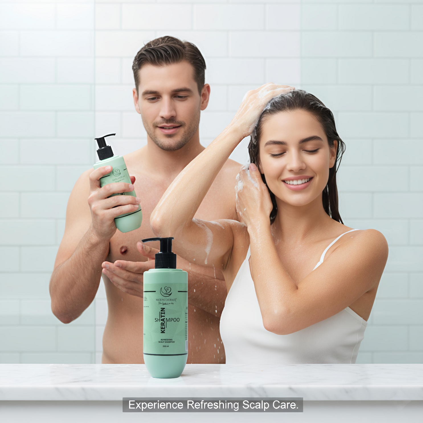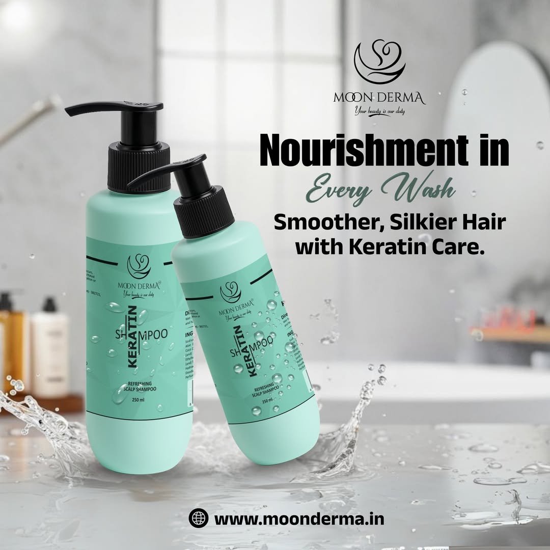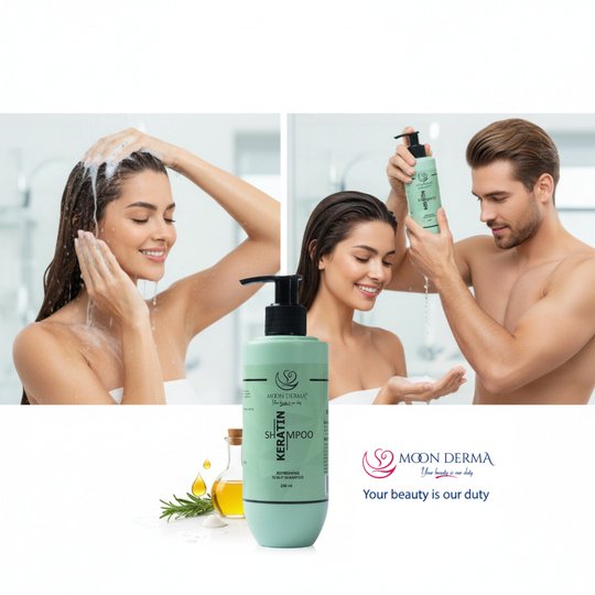 Experience the perfect blend of nature and science with Moon Derma Keratin Shampoo. Crafted with pure, organic ingredients and formulated to meet high pharmaceutical standards, this shampoo gently nourishes and strengthens every strand. Enriched with keratin, it repairs damage, boosts hair resilience, and restores natural shine without harmful chemicals. Suitable for all hair types, it cleanses deeply while keeping your scalp healthy and your hair soft, smooth, and vibrant. Embrace clean, safe, and effective hair care designed for lasting beauty. Your hair’s natural duty, fulfilled with care.
